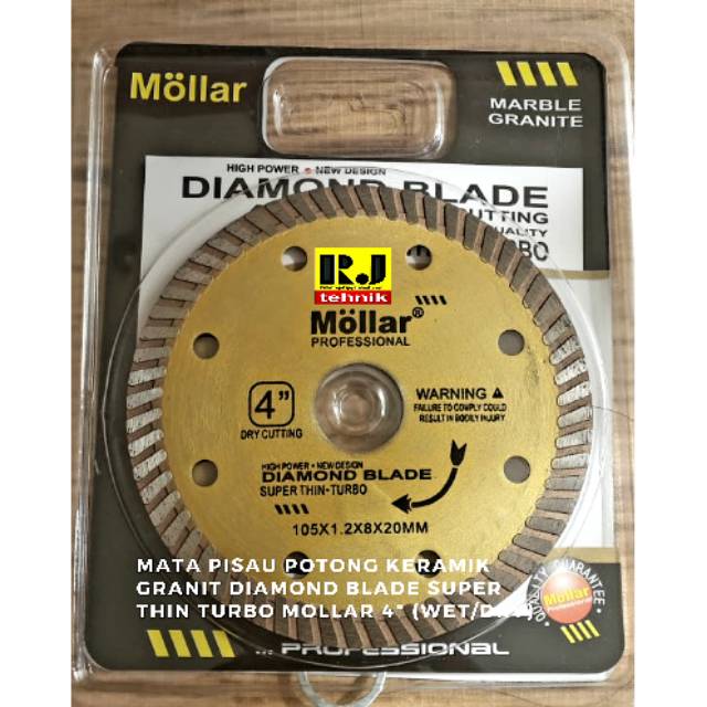 Name: Mata Pisau Potong Keramik Granit Diamond Blade Super Thin Turbo Mollar 4" (wet/dry)