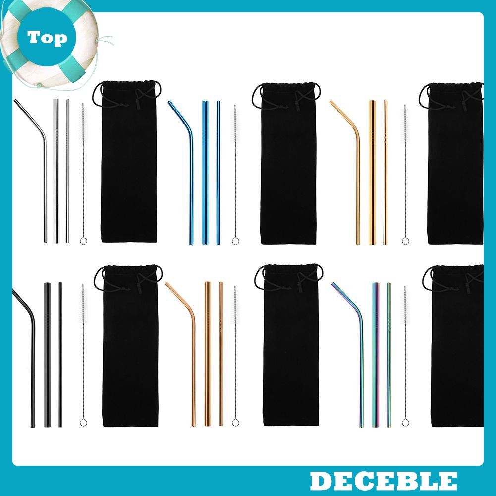Name: [deble] 5pcs/set Reusable Stainless Steel Straight Bent Drinking Straws Clean Brush