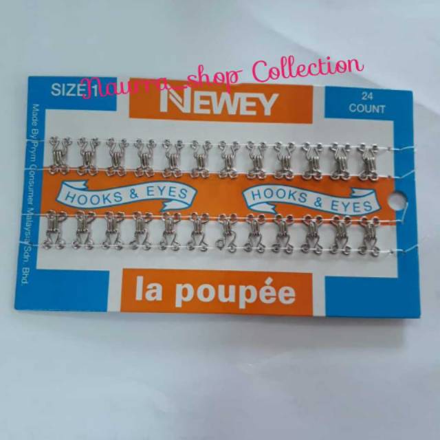 Kancing Kait / Kancing BH (Hooks & Eyes) Newey Size 1 Panjang 1,2 cm Ready Silver & BlackKancing kait Newey, ringan dan kuat, anti karat, pemakaian nya mudah.Bisa di pakai untuk bra, baju celana dll sesuai kebutuhan.Harga Rp. 10.000Isi 2 lsn pasang / 24 pasang #kancingkait#hakkait#hook&eyes#kaitnewey#ka