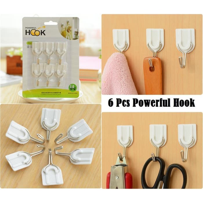 Name: Powerfull Hook 1 Set Isi 6 Cantolan Gantungan Barang Baju Tempel Tembok Dinding Kait