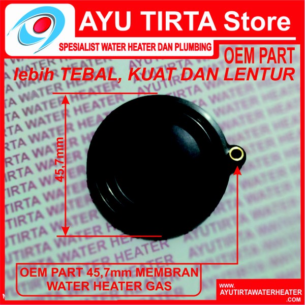 Sedia spare part KARET MEMBRAN Water Heater gas high pressure kualitas terbaik. karet membran Water Heater merupakan komponen elektronik yang sangat penting pada Water Heater tipe gas (LPG) high pressure yang memiliki fungsi antara lain.1. mengontrol tekanan air 2. Pendorong klep pressure gas3. Penggerak sensore Pressure swict4. Pengaman kebocoran mekanikal waterSatu set karet membran terdiri dari :1. karet membran pressure2. cel spiral pressure3. cel water level4. cel gas level kontrolJika Water heater anda ngadat karena ada yang bocor. tidak ada percikan api, maka karet membran ini adalah solusi paling tepat, ganti...! maka water heater anda akan kembali ciamik.Nb. membran ini berdiameter 4,57cm atau 45,7mm cocok di aplikasikan water heater gas lokal... untuk merk lain disesuaikan dahulu diameternya kalo sama bisa diaplikas