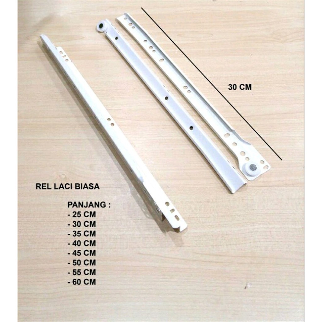 Rel Laci ukuran panjang 300mm (30 cm) dengan bahan besi plat dan warna beige untuk berbagai aplikasi laci dengan harga murah dan terjangkau.- Bahan : Besi Plat.- Warna : Beige / Putih.- Merk : HUBEN (Harga Dan Kualitas Ekuivalen).- Satuan penjualan : satu pasang rel kanan kiri.Varian Ukuran (varian ukuran lain bisa anda telusuri di etalase kami) : 25 cm, 30 cm , 35 cm, 40 cm, 45 cm, 50 cm, 55 cm, 60 cm.NB : Foto ilustrasi semua ukuran dijadikan dalam satu pengambilan foto untuk menggambarkan dimensi dan skala relatif.Tambahkan di Keranjang belanja Anda Packing Safety (Pengaman Paket Barang Kardus Plastik) agar barang Anda lebih aman di perjalanan:terima